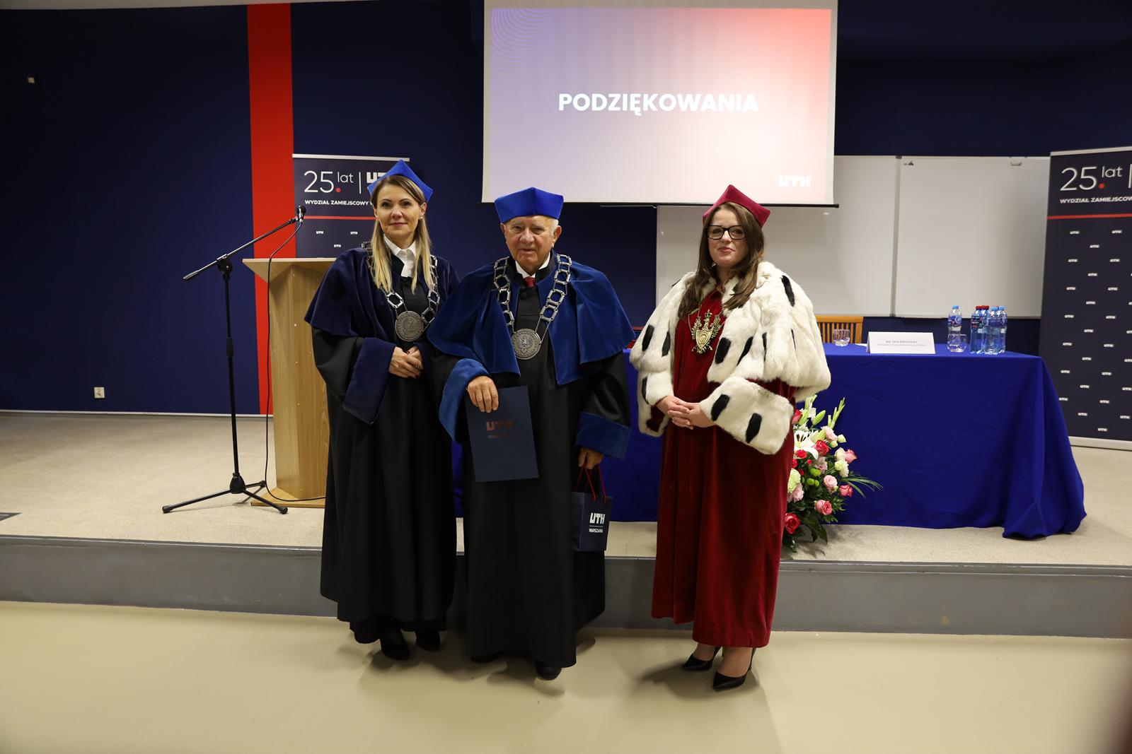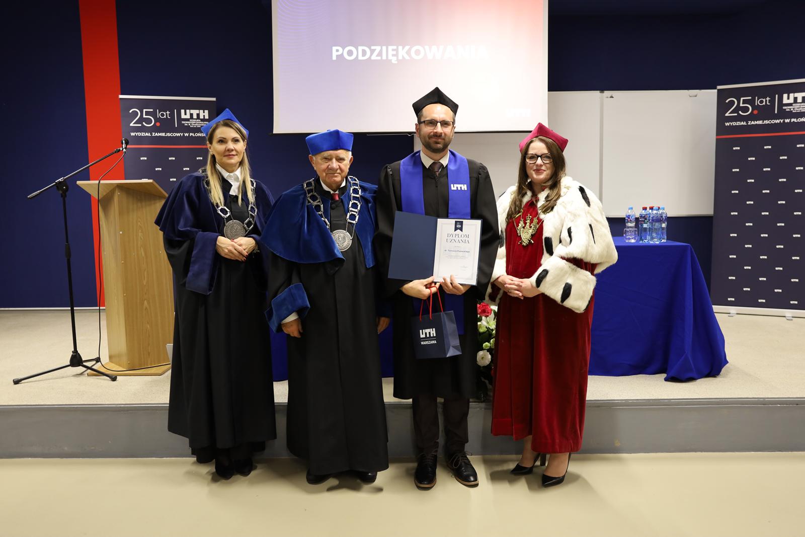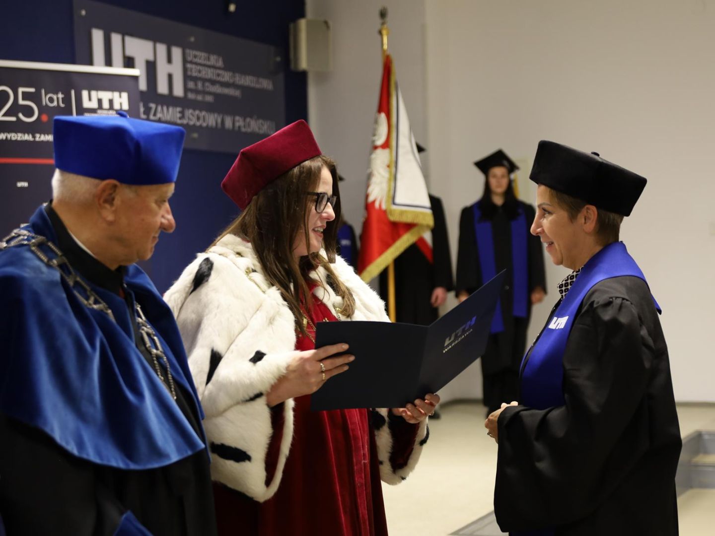 Dyplomy z podziękowaniami odebrali m.in. dr inż. Stanisław Krysiński, prof. UTH – Dziekan Wydziału Zamiejscowego w Płońsku oraz dr Tomasz Pajewski – Prodziekan Wydziału w latach 2024–2025.