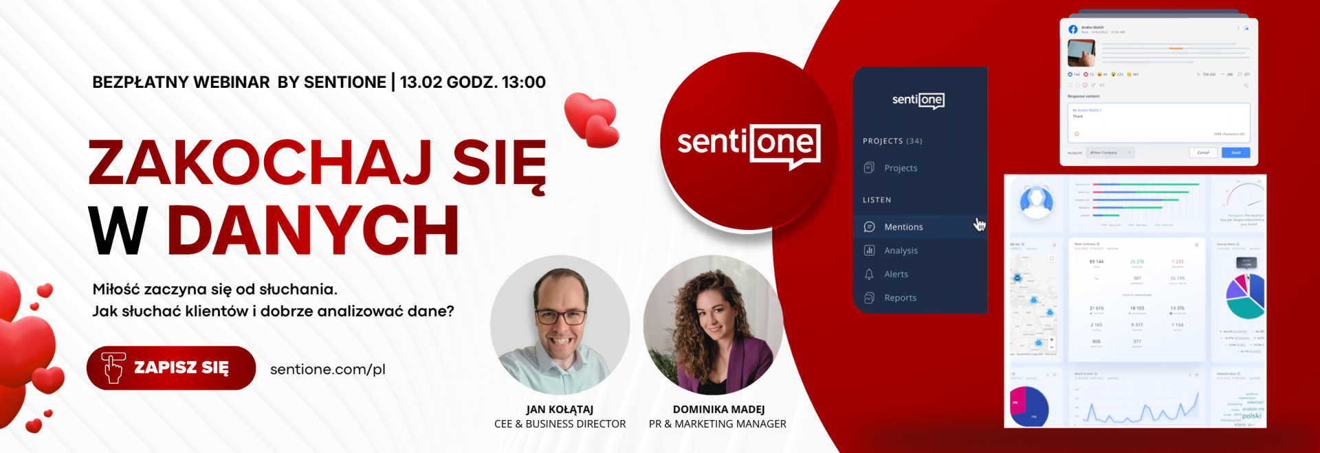 SentiOne to narzędzie, które pozwala zbierać, analizować i interpretować dane z różnych źródeł internetowych. Podczas webinaru pokażemy, jak dane o nastrojach użytkowników mogą pomóc w: