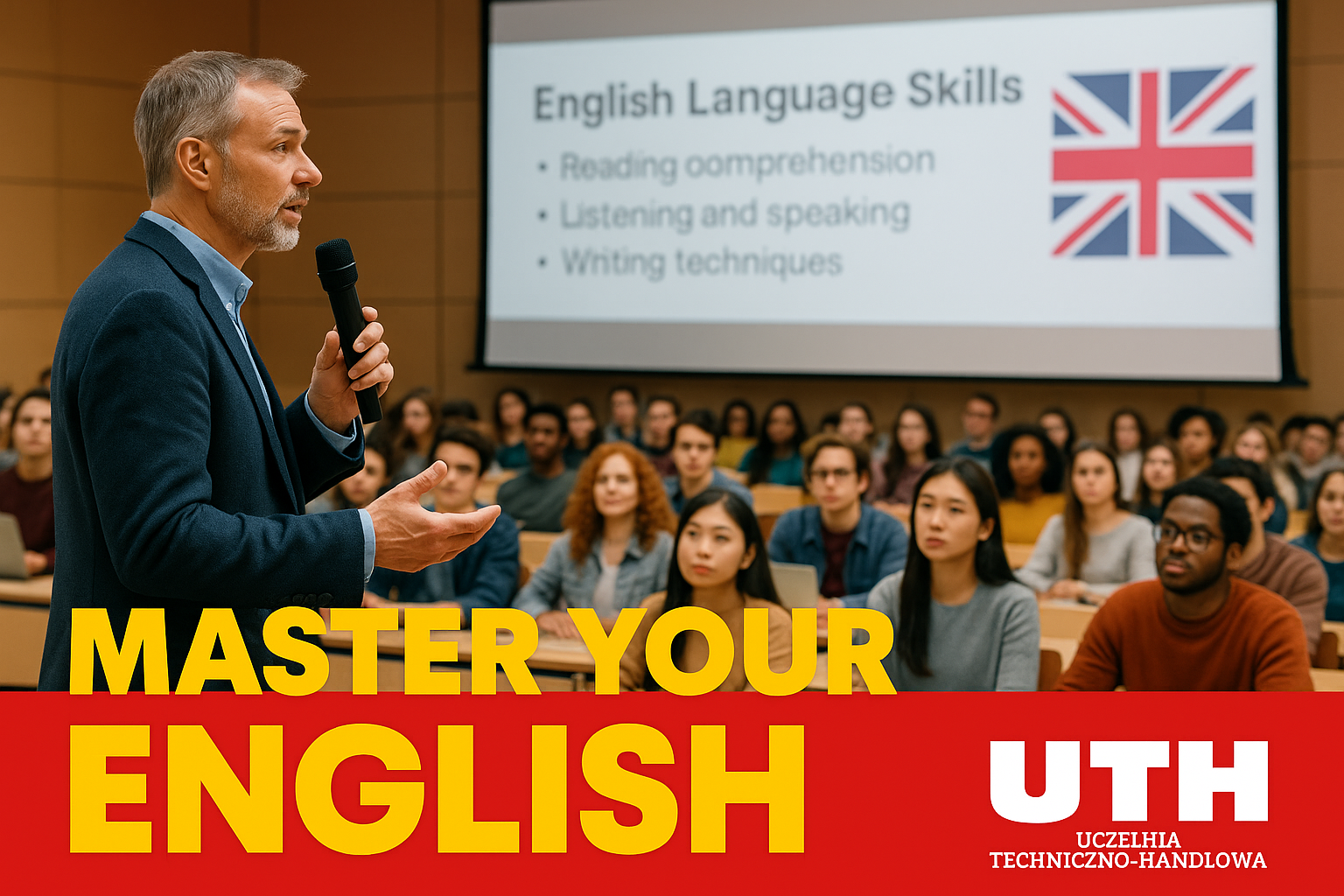 Kurs stworzony w celu wzmocnienia umiejętności językowych pracowników uczelni, niezbędnych do płynnej współpracy w środowisku międzynarodowym. Dzięki angażującym zajęciom i interaktywnym ćwiczeniom uczestnicy udoskonalą swój angielski w mowie i piśmie, umożliwiając skuteczną interakcję w wielokulturowym społeczeństwie, poszerzając horyzonty kariery oraz rozwijając się osobiście i zawodowo.
